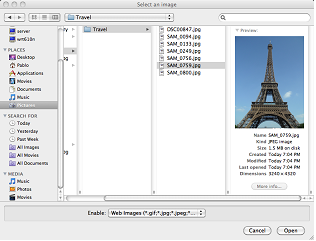 The size of the box does not matter; Quick 'n Easy Web Builder automatically adjusts the box to fit the image after you place it. The Image File Open dialog appears so you can locate the image you want to place in the image box. Select the image you want to add and click Open to add it to the page.