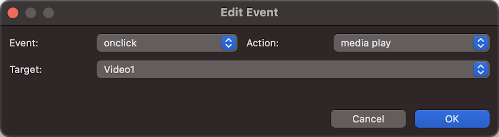 You can control the playback of YouTube, Vimeo, or MP4 videos using events. For example, you can trigger a video to start playing when a user clicks a button, hovers over an image, or performs another action on the page. Additionally, events like stopping and pausing can also be configured. This allows for interactive, dynamic video experiences that enhance user engagement. You can easily set these actions in the Events section of buttons, images and many other objects, offering a variety of triggers to customize your video behavior.