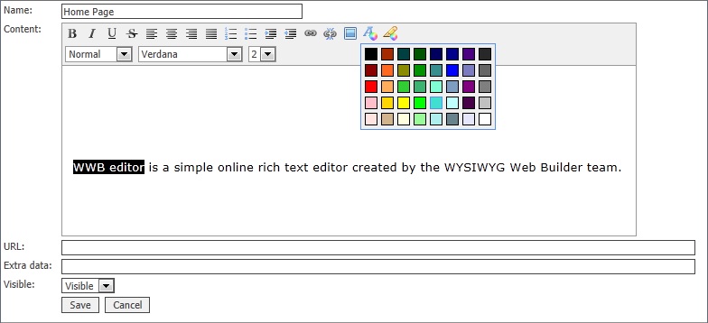 WWB editor is a very basic editor with tools for formatting, bullets, links and embedded images.