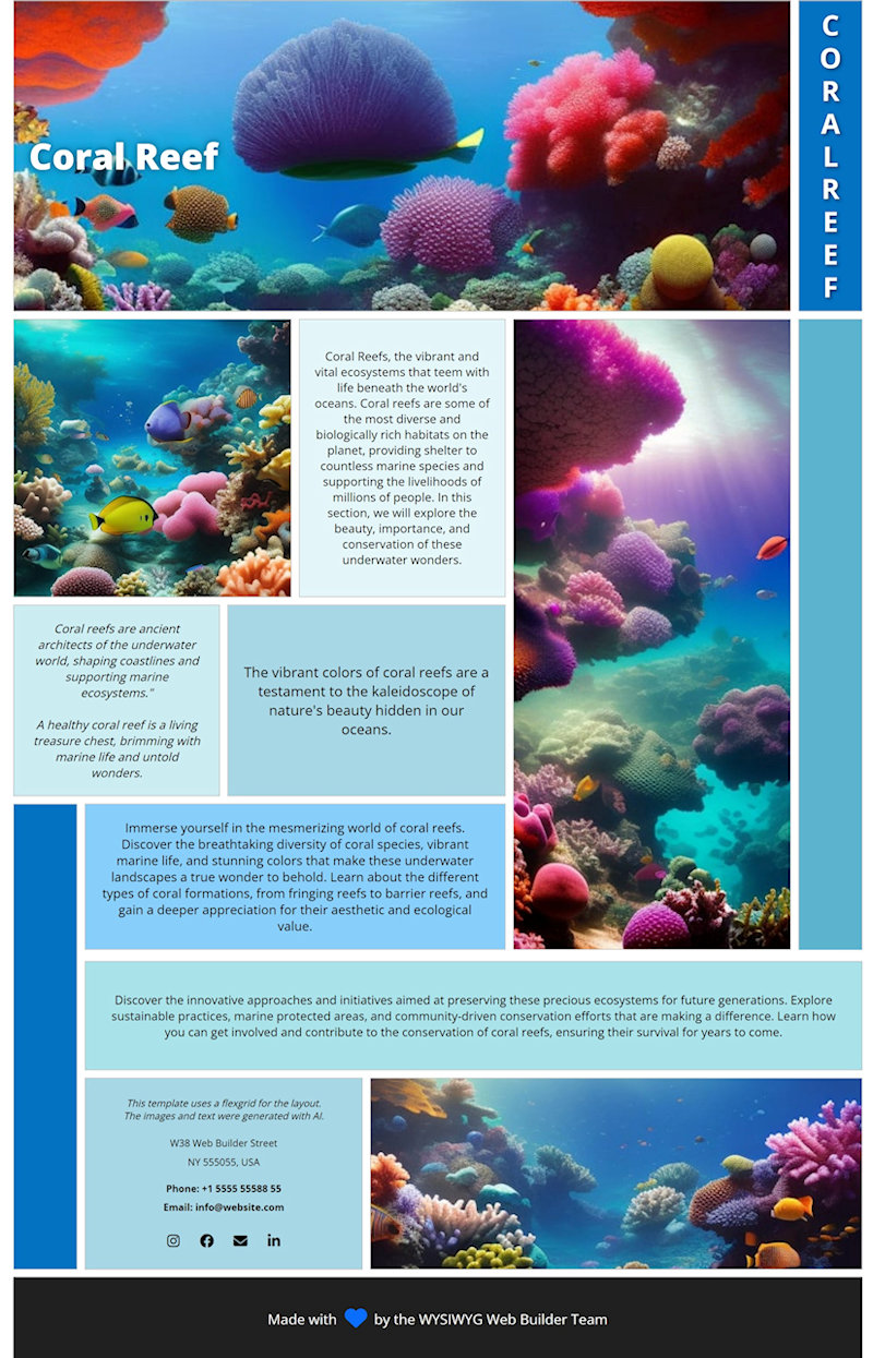 The idea behind the Flex Grid is to divide a web page into columns and rows. The columns and rows have named areas where you can drag & drop objects to. The layout can be different in breakpoints. Each grid area supports its own padding, (flexbox) alignment, border and background styling.